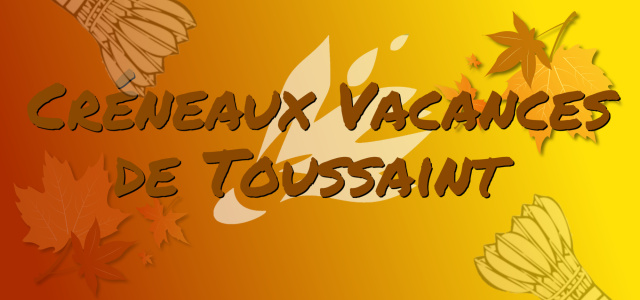 Hello les badistes rochelais!Le bad continue pendant les vacances de la Toussaint. Vous trouverez la liste ci-dessous des créneaux disponibles pendant les vacances. Les créneaux jeunes n'auront pas lieu et les créneaux d'entraînements seront des créneaux de jeu libre durant cette période. A très vite sur…